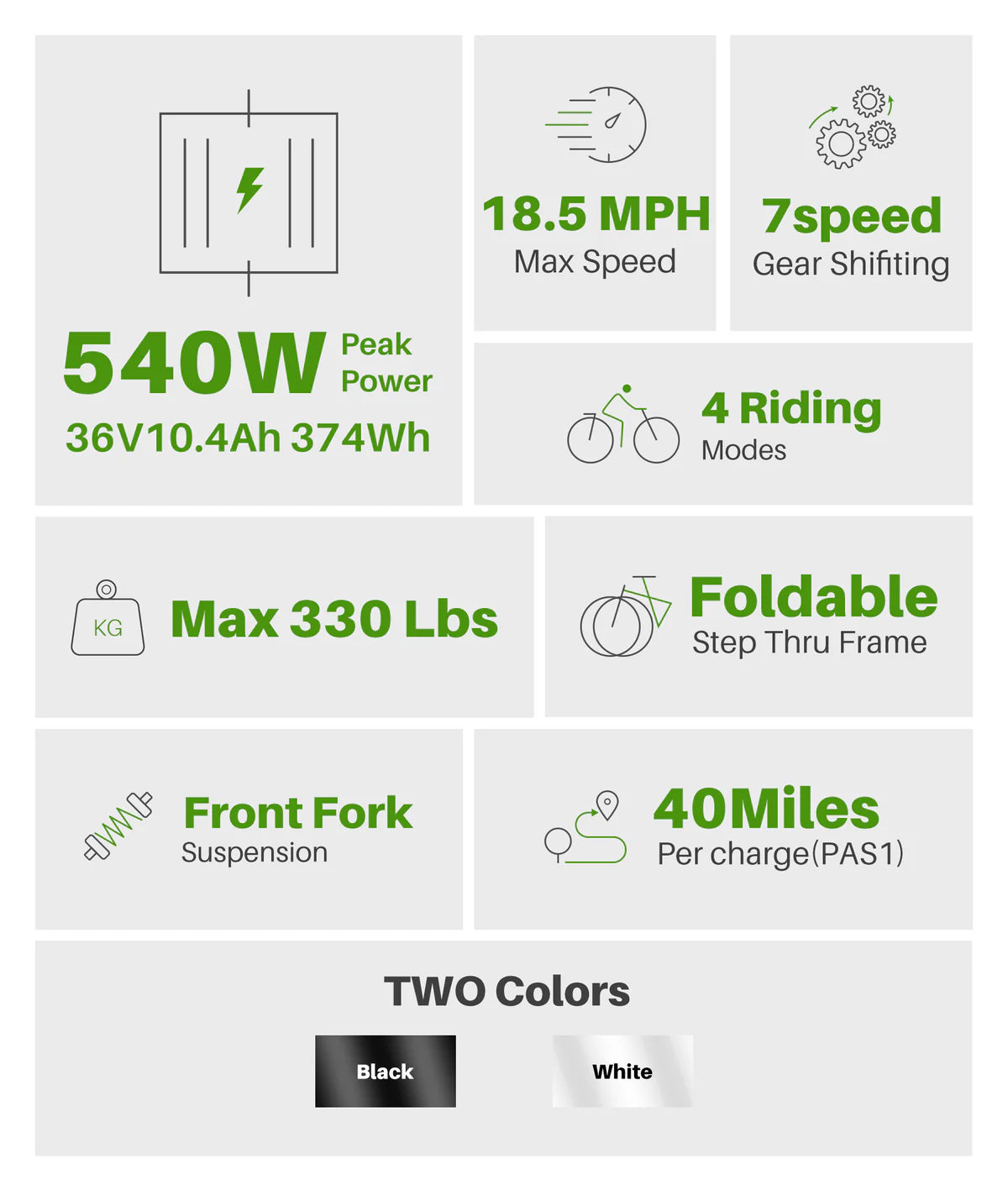 540 W Peak Motor (350 W Rated) – Strong assist power up to 20 mph.