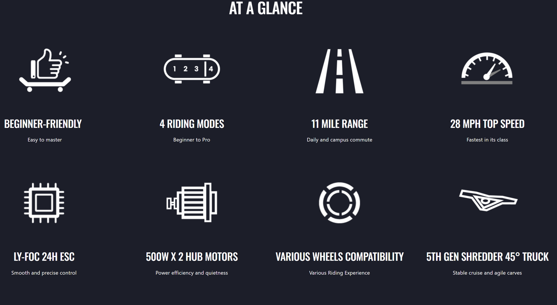 - Fast, punchy acceleration, great for hills and quick takeoffs